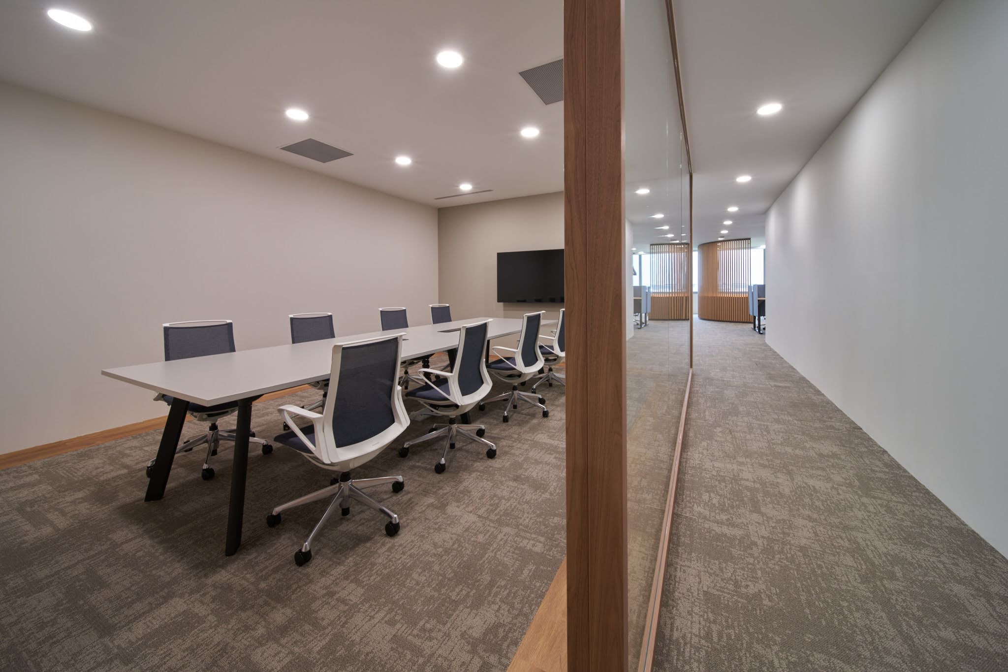 We were asked to transform this office into a space that balances productivity with comfort. Previously divided into small meeting rooms, the area felt fragmented. Our redesign opened it up into a spacious work area paired with two modern meeting rooms.