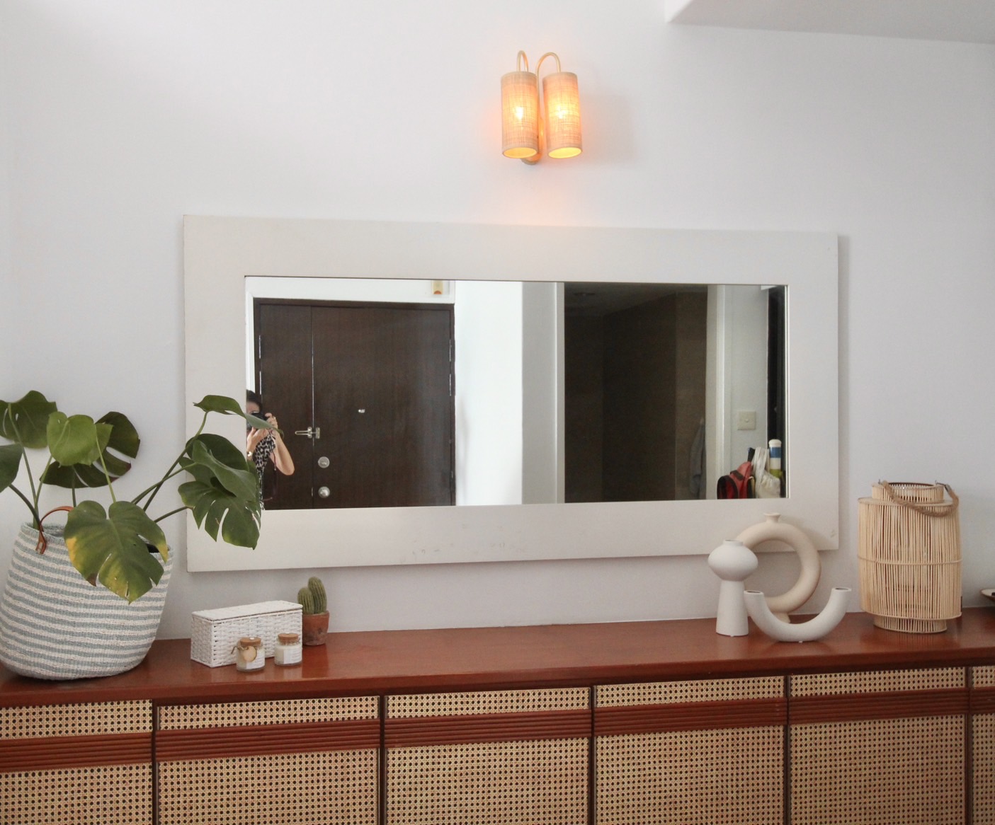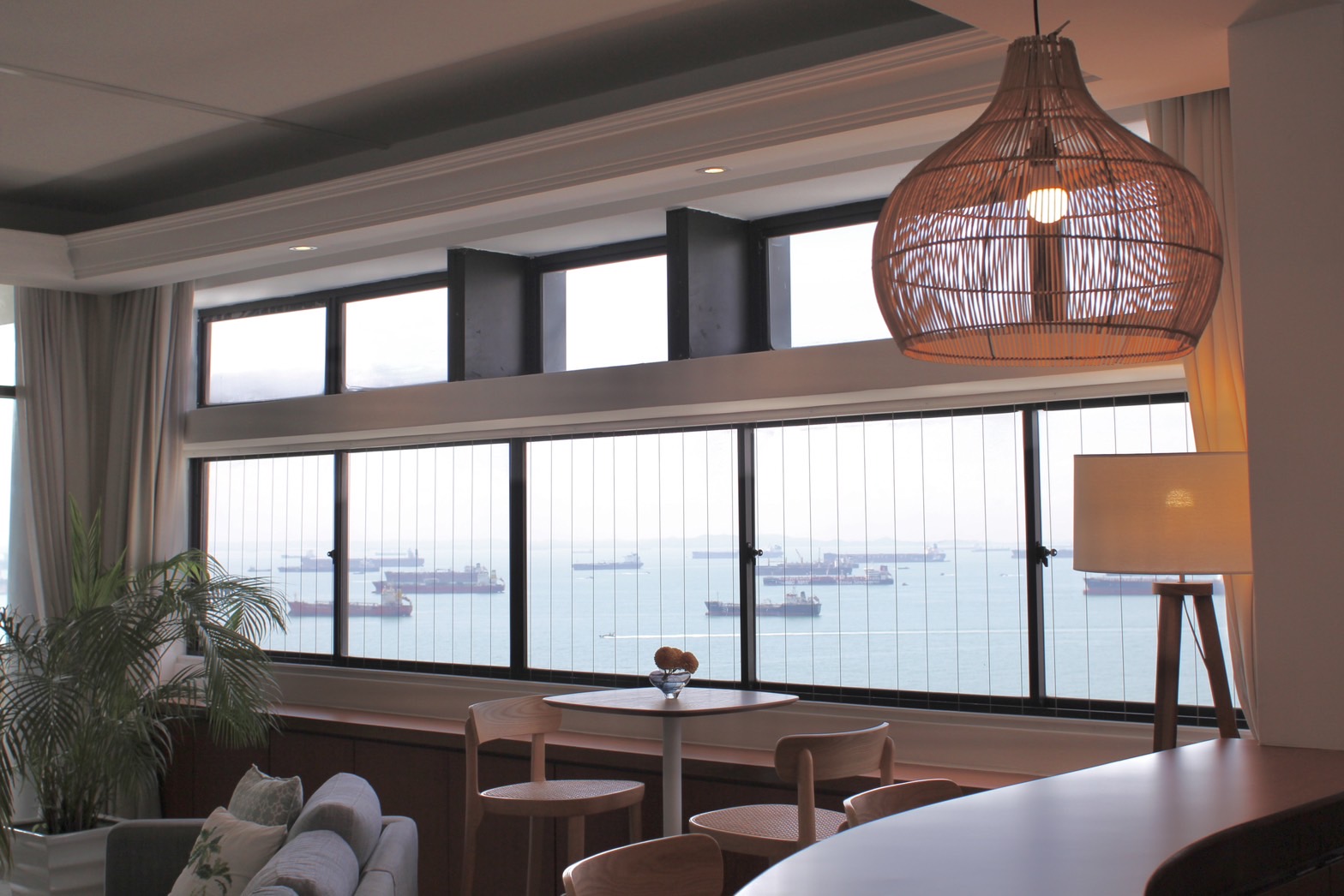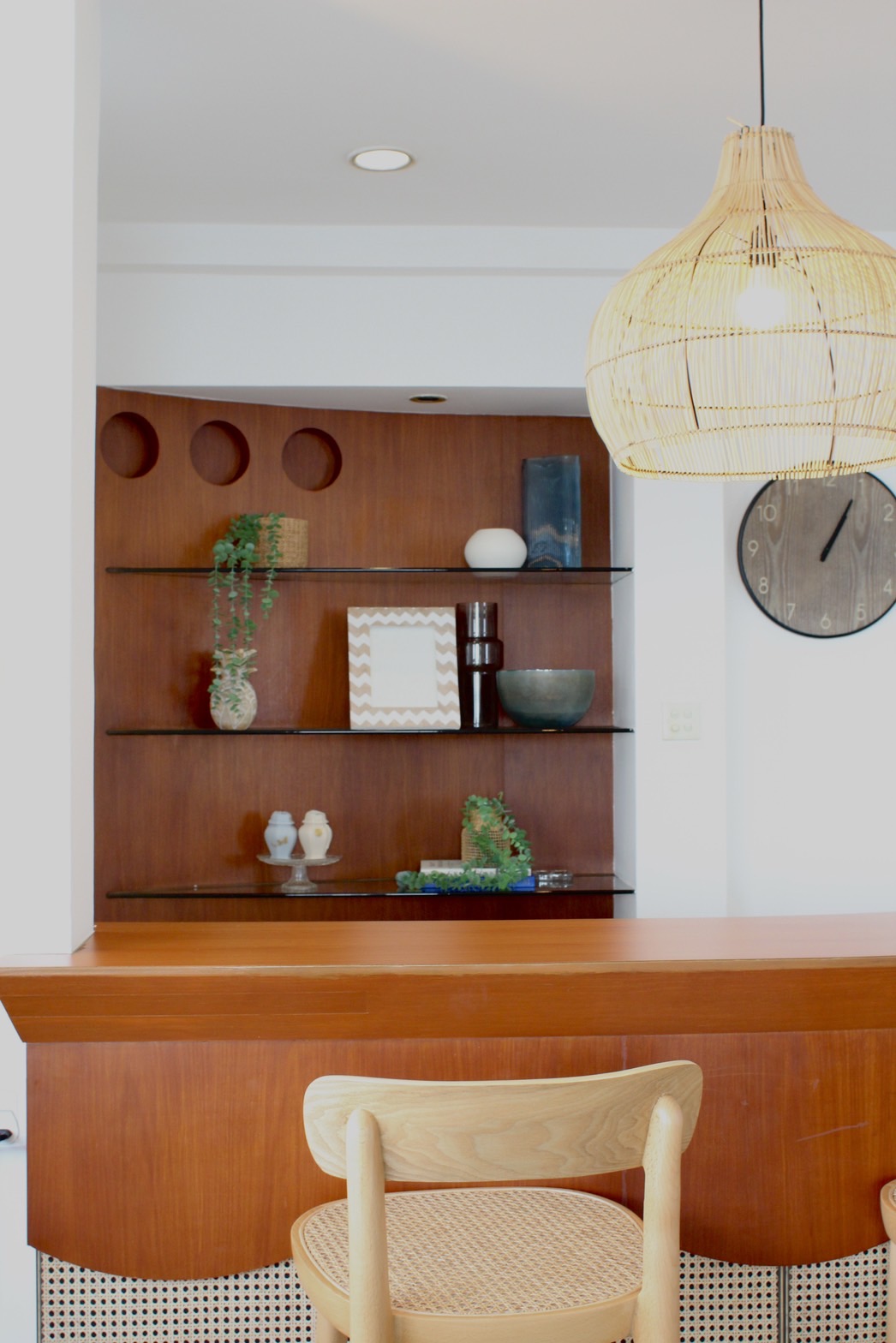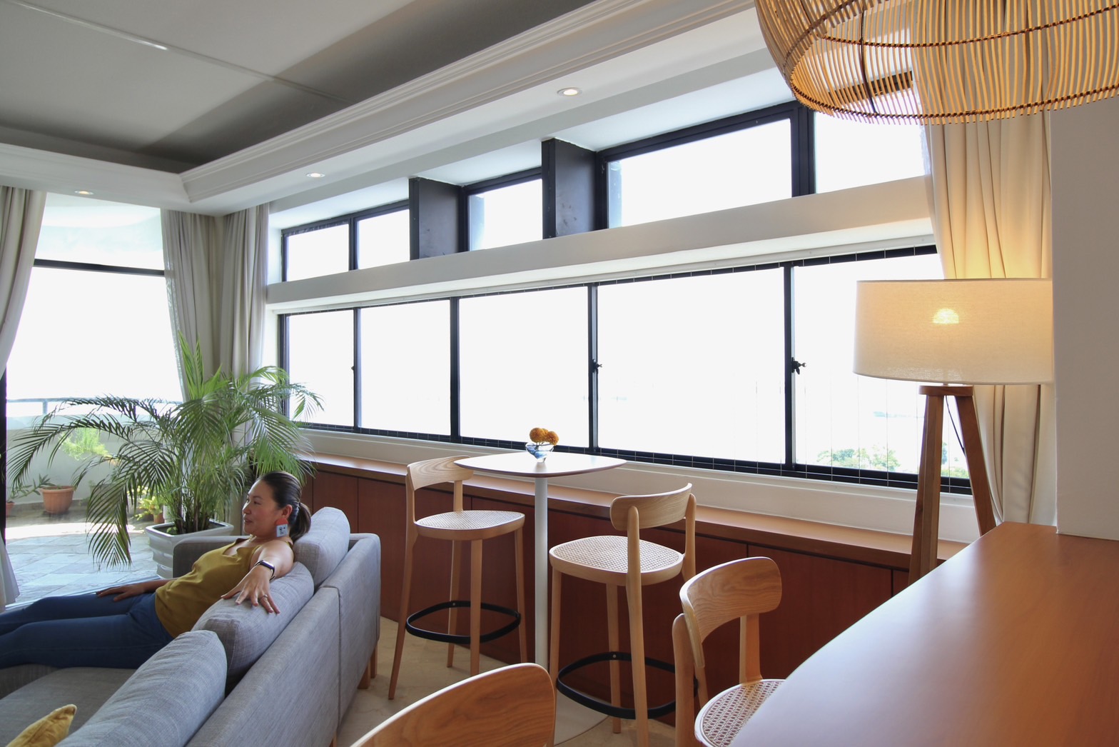 Imagine waking up to the sound of waves and the endless blue of the ocean—that’s the everyday reality in this seaside condominium. The client kept their beloved sofa and dining table but refreshed the look with new rugs, lighting, a bar table with stools, dining chairs, and accessories. Inspired by the sea and sky, we brought in soft blues and natural rattan textures, including removable rattan-patterned wallpaper that instantly lightened the existing wood furniture. The result is a relaxed, tropical retreat with the warmth of Bali and the closeness of the sea and sky. As it is so inviting, it even caught the attention of the “Ohayo-ko Channel” on YouTube!