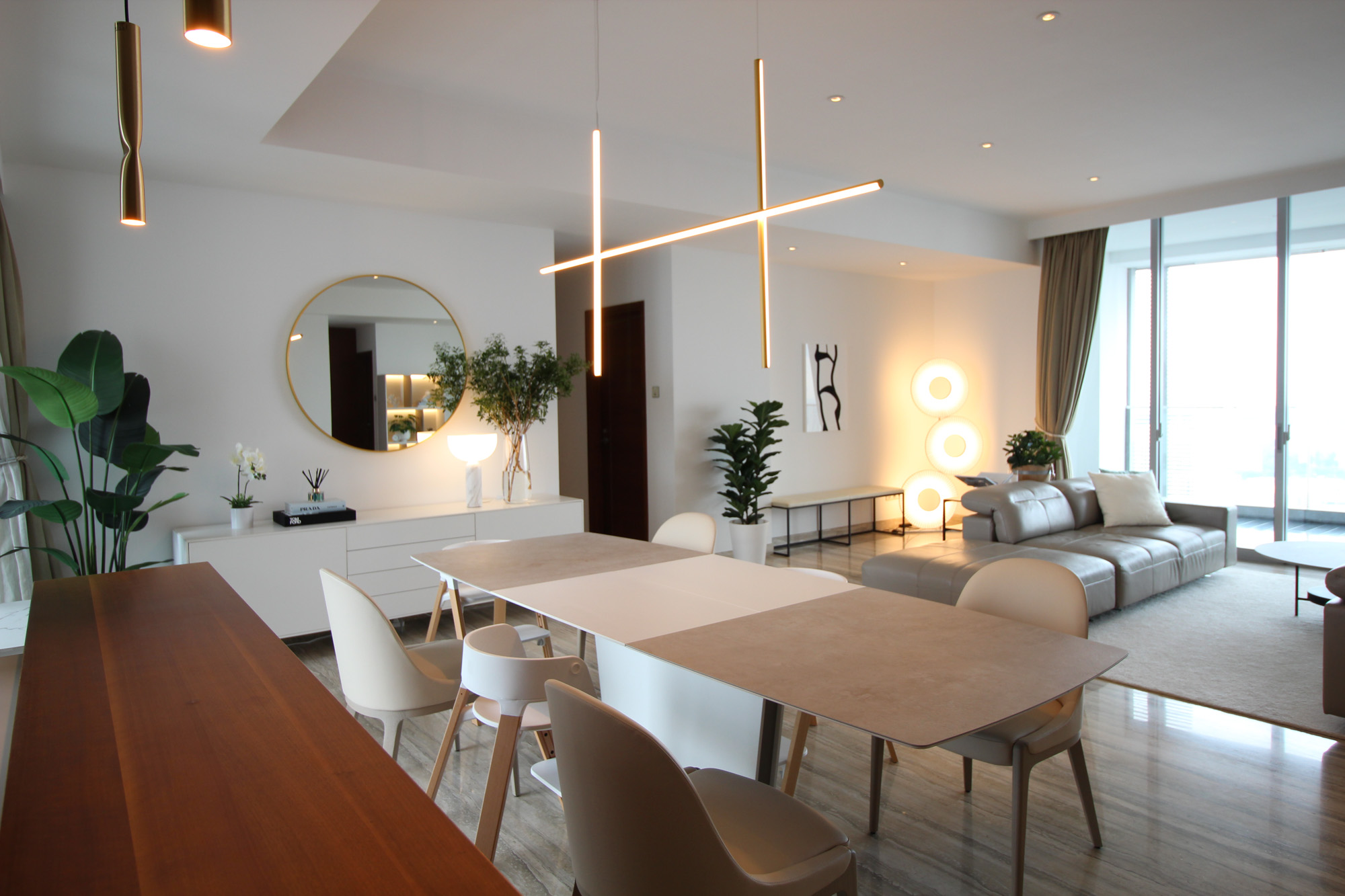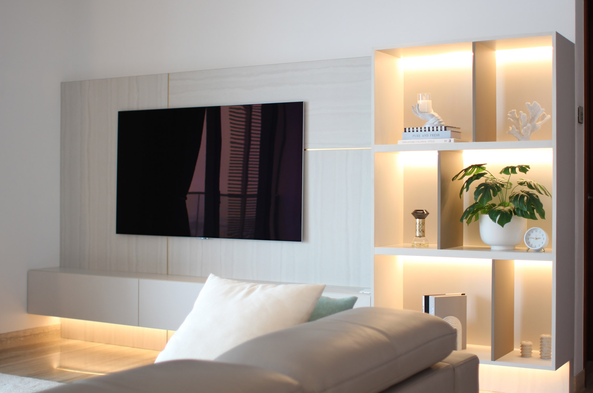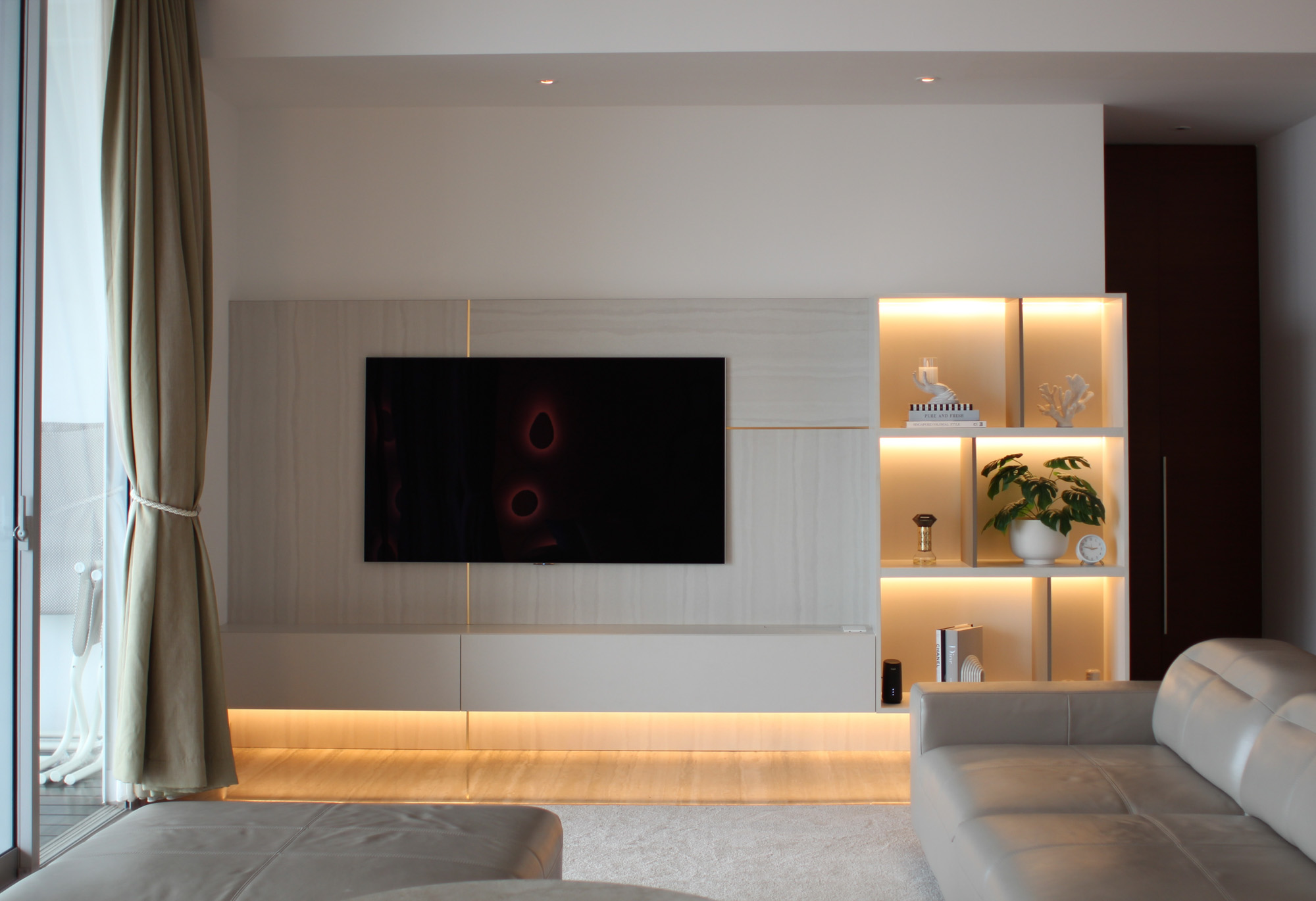 Even in a rental, your home can reflect exactly who you are. Using the client’s existing sofa and dining table from Japan, we layered in new pieces and custom-built furniture to create a space that is functional, beautiful, and uniquely theirs. A tailor-made TV wall and shoe closet were designed to protect the flooring while maximizing storage. Every detail—from the size to the color, shape, and layout—was customized, proving that bespoke furniture works wonders even without ownership of the property. Lighting transformed the atmosphere: three pendant lights, a floor lamp, a table lamp, and integrated linear lighting all complement the existing downlights. The effect is warm, layered, and impossible to replicate without design-driven choices. And when it’s time to move, The custom TV board is ready to come along to the next home. Rental or not, great design can be as lasting as it is personal. *Pendant lights can be installed in rental properties too (depending on the landlord’s rules), so we highly recommend experiencing the depth and richness that thoughtful lighting brings.
