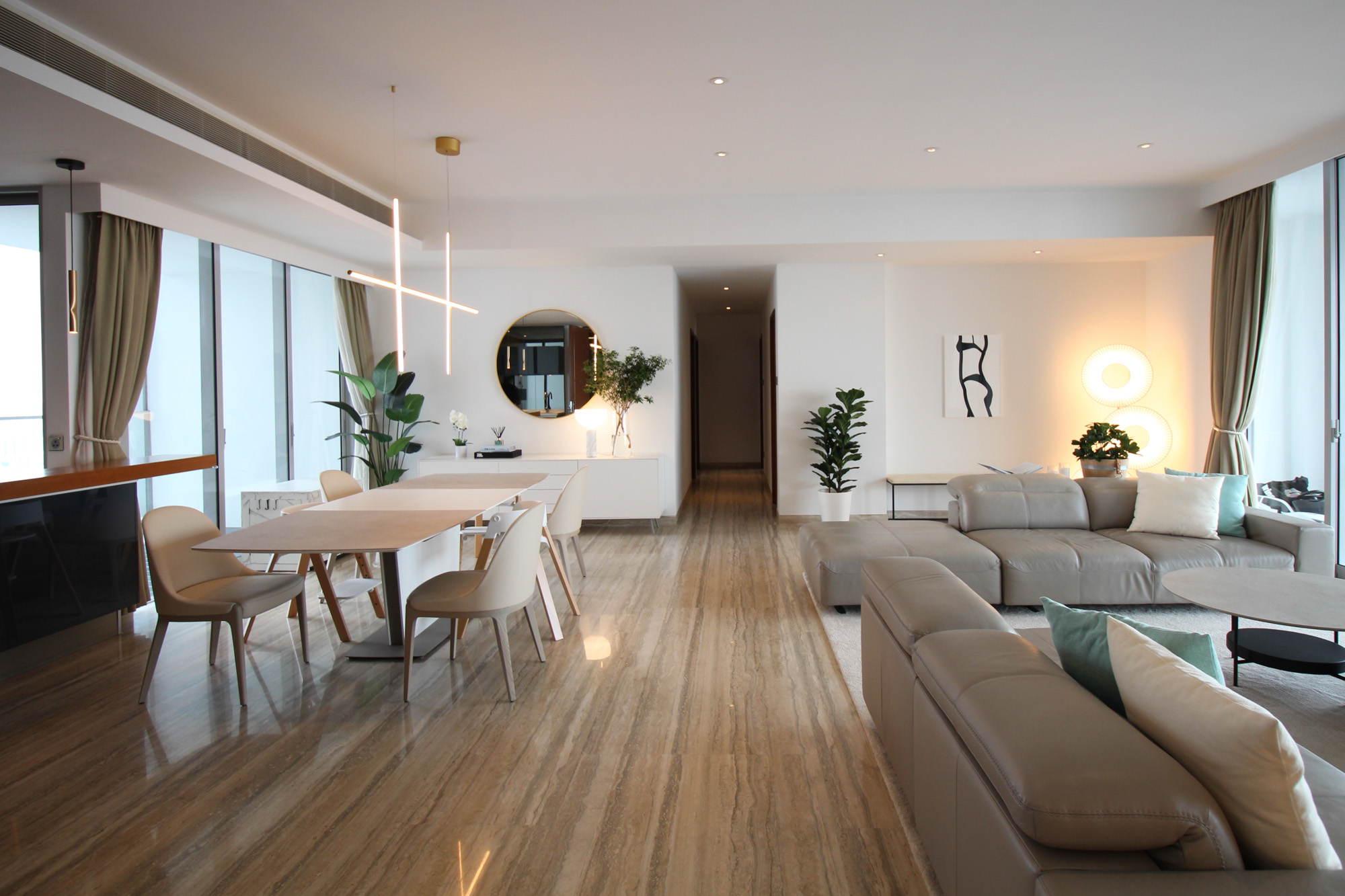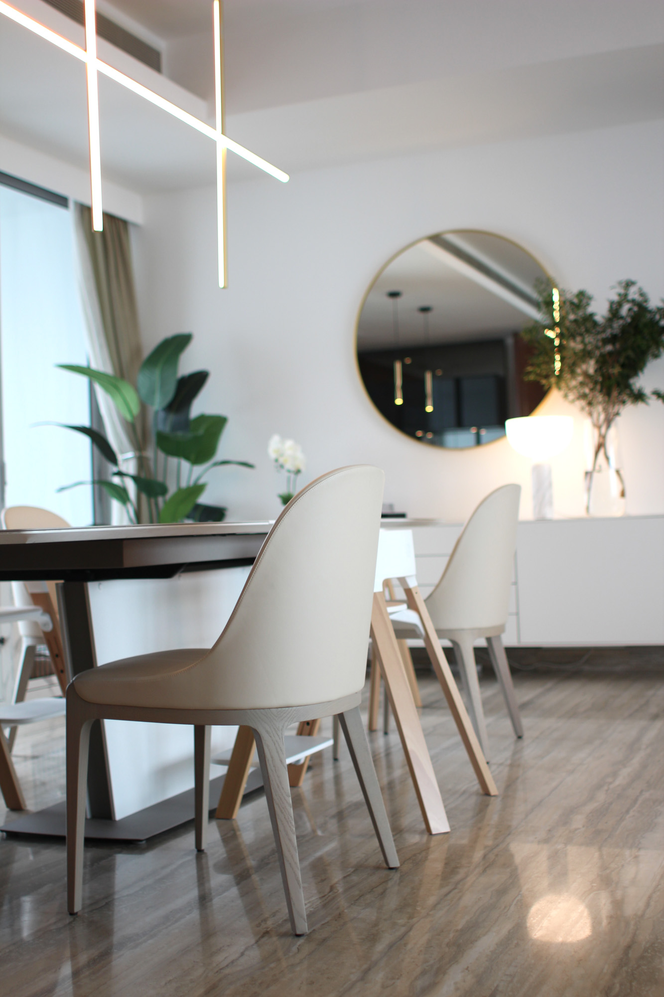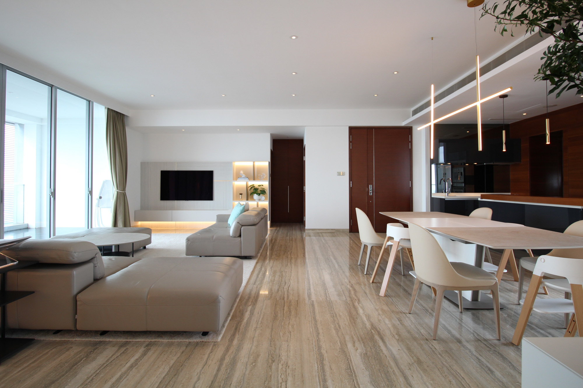 Even in a rental, your home can reflect exactly who you are. Using the client’s existing sofa and dining table from Japan, we layered in new pieces and custom-built furniture to create a space that is functional, beautiful, and uniquely theirs. A tailor-made TV wall and shoe closet were designed to protect the flooring while maximizing storage. Every detail—from the size to the color, shape, and layout—was customized, proving that bespoke furniture works wonders even without ownership of the property. Lighting transformed the atmosphere: three pendant lights, a floor lamp, a table lamp, and integrated linear lighting all complement the existing downlights. The effect is warm, layered, and impossible to replicate without design-driven choices. And when it’s time to move, The custom TV board is ready to come along to the next home. Rental or not, great design can be as lasting as it is personal. *Pendant lights can be installed in rental properties too (depending on the landlord’s rules), so we highly recommend experiencing the depth and richness that thoughtful lighting brings.