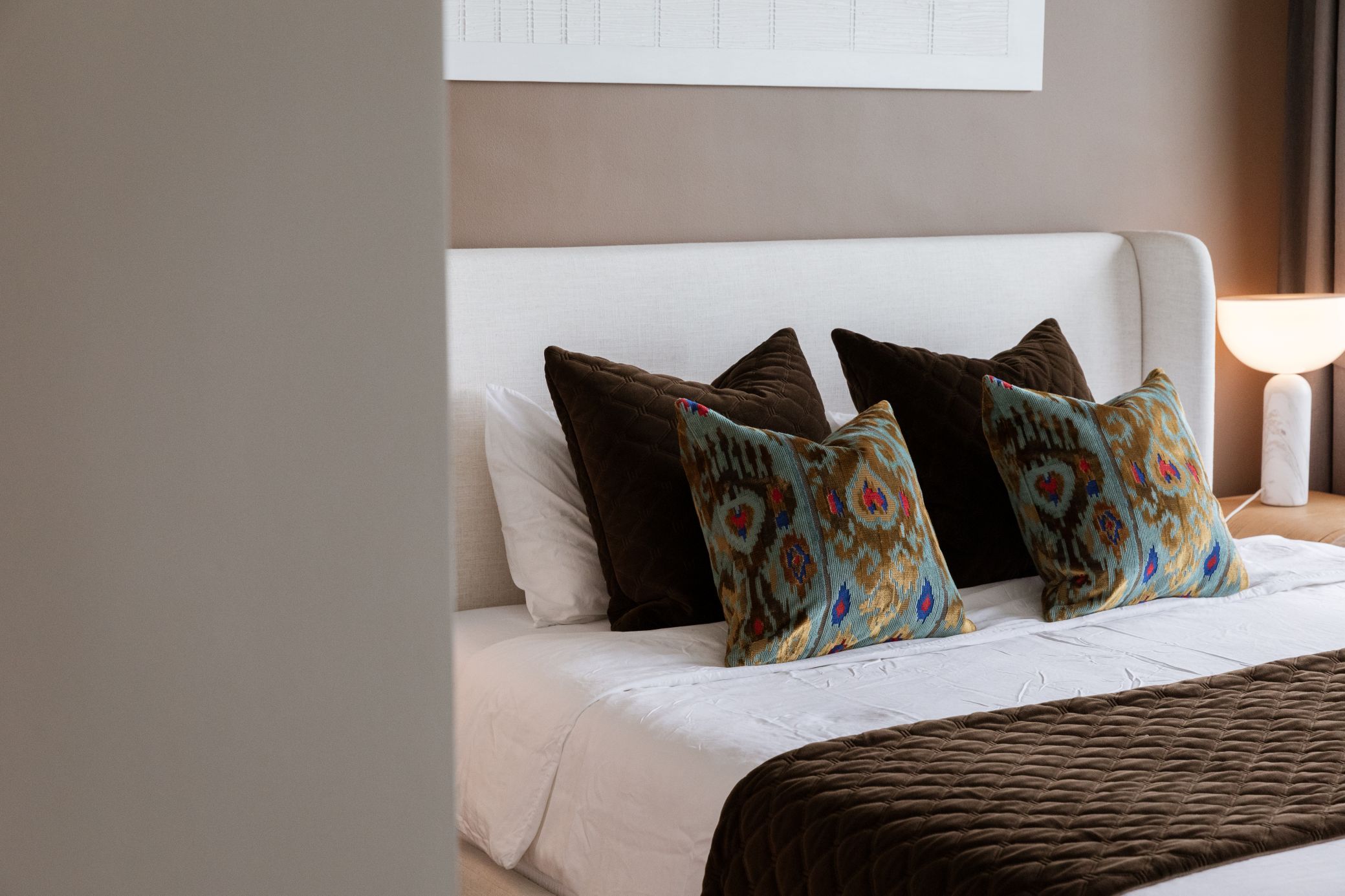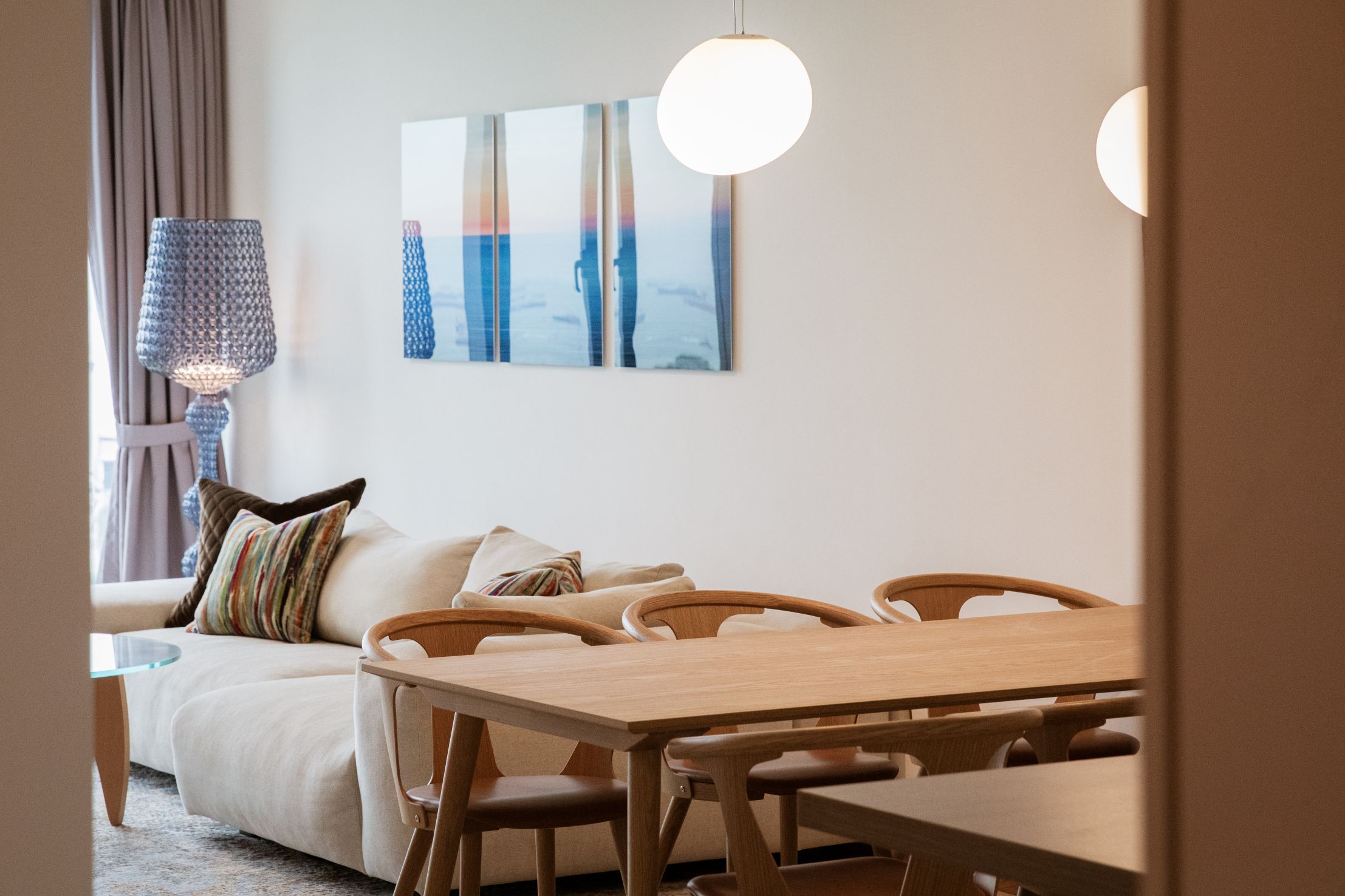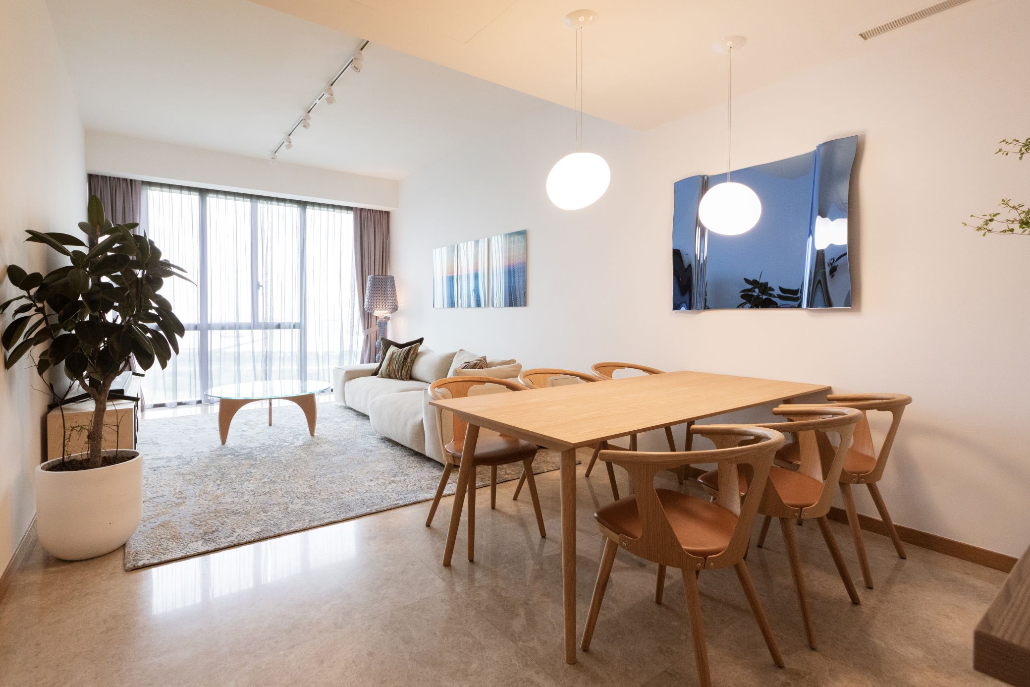 Set against the backdrop of the Singapore sea, this home bursts with personality — a perfect balance of vibrant color, light, and timeless design. The client wanted an interior that was playful yet cohesive, lively yet refined. The design began with classic Scandinavian furniture, known for its clean lines and enduring style. To reflect the client’s individuality, we layered in art, accessories, and unexpected accents. The piece that set the tone was a bold blue Glas Italia mirror placed at the far end of the dining area — a contemporary Italian statement that added sophistication and edge to the Scandinavian foundation. Along the wall, photographic art leads the eye toward the sculptural Kartell Kabuki floor lamp, which adds drama and personality. A curated mix of rugs, cushions, and warmer lighting softened the overall atmosphere, making the space inviting and comfortable. One of the client’s favorite additions is a colorful console table that now serves as a joyful welcome for guests. The same approach was carried into the bedrooms. In the master bedroom, dark brown walls provide a rich contrast to the bright sea views and crisp white bed frame, creating a chic yet airy retreat. This is a home where every detail — from the placement of art to the glow of light — celebrates both style and individuality.