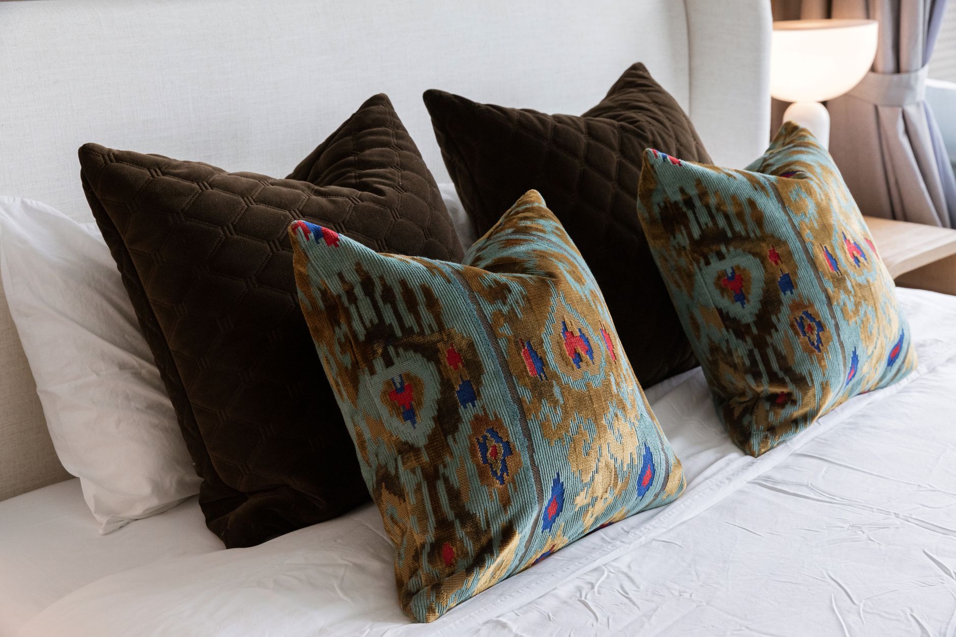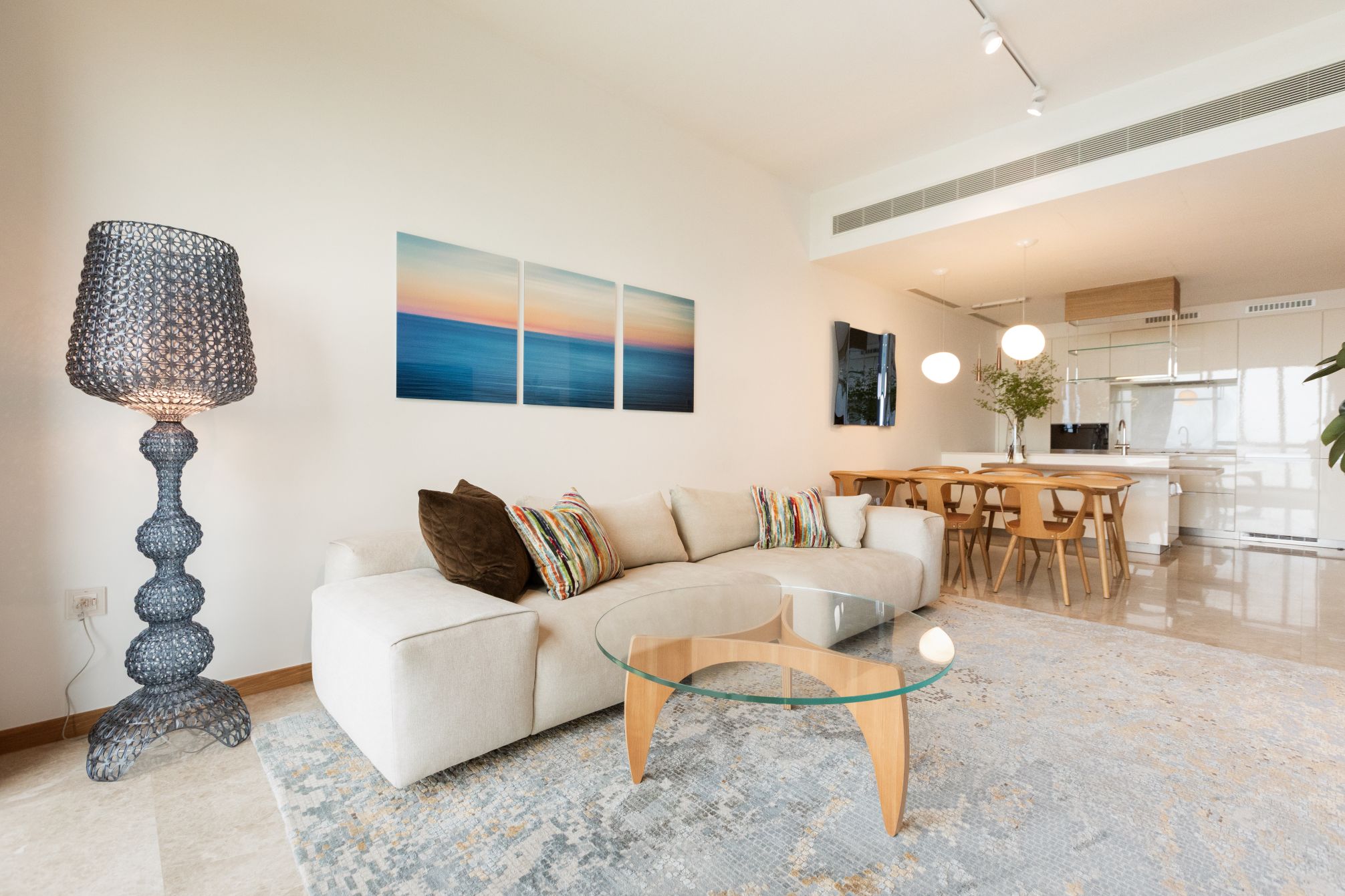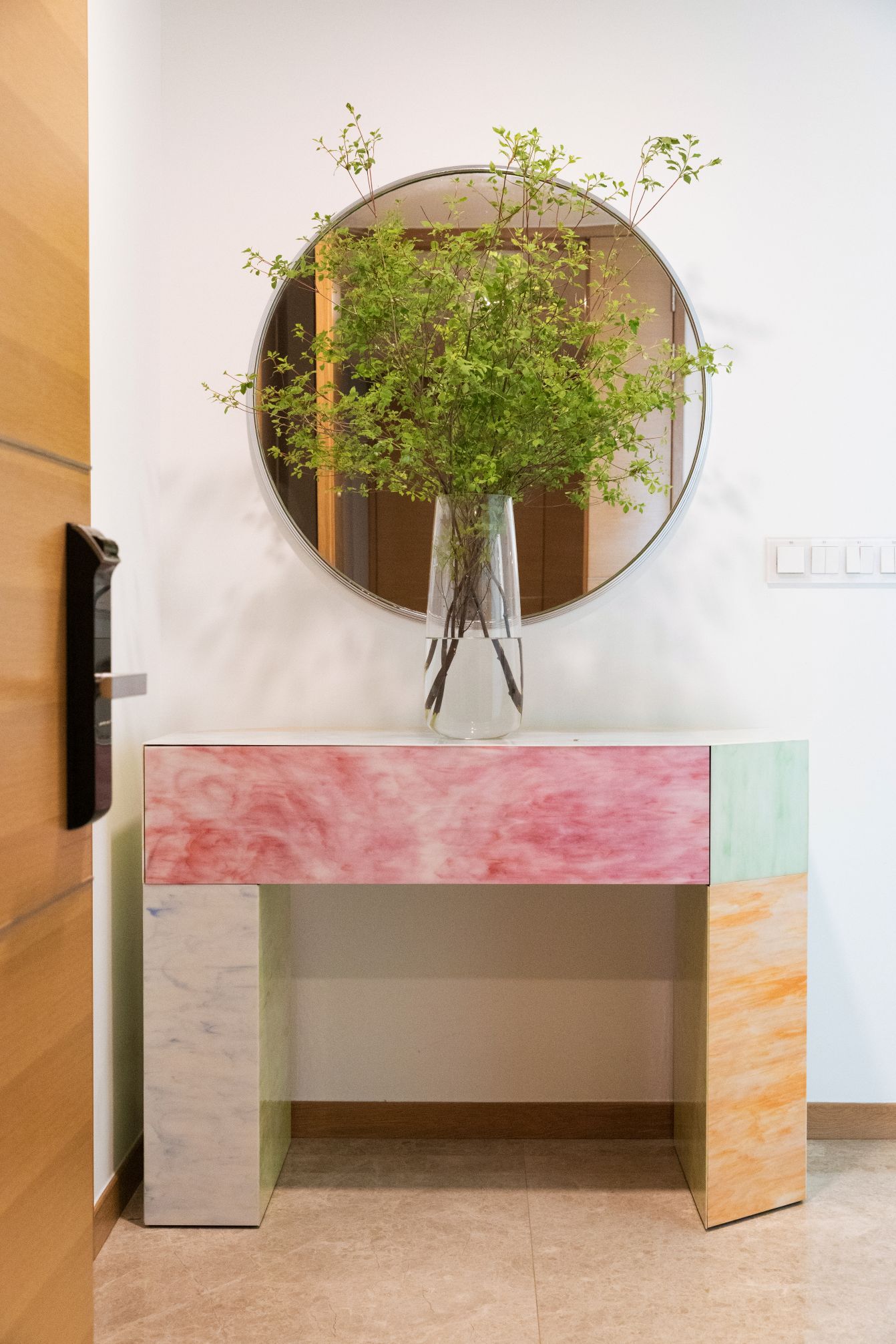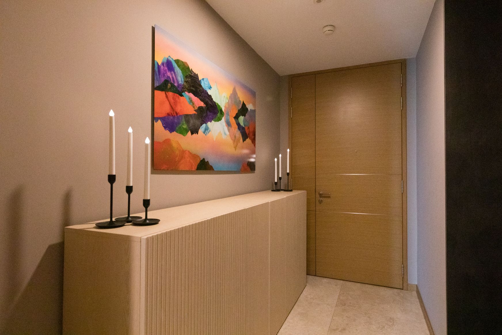 Set against the backdrop of the Singapore sea, this home bursts with personality — a perfect balance of vibrant color, light, and timeless design. The client wanted an interior that was playful yet cohesive, lively yet refined. The design began with classic Scandinavian furniture, known for its clean lines and enduring style. To reflect the client’s individuality, we layered in art, accessories, and unexpected accents. The piece that set the tone was a bold blue Glas Italia mirror placed at the far end of the dining area — a contemporary Italian statement that added sophistication and edge to the Scandinavian foundation. Along the wall, photographic art leads the eye toward the sculptural Kartell Kabuki floor lamp, which adds drama and personality. A curated mix of rugs, cushions, and warmer lighting softened the overall atmosphere, making the space inviting and comfortable. One of the client’s favorite additions is a colorful console table that now serves as a joyful welcome for guests. The same approach was carried into the bedrooms. In the master bedroom, dark brown walls provide a rich contrast to the bright sea views and crisp white bed frame, creating a chic yet airy retreat. This is a home where every detail — from the placement of art to the glow of light — celebrates both style and individuality.