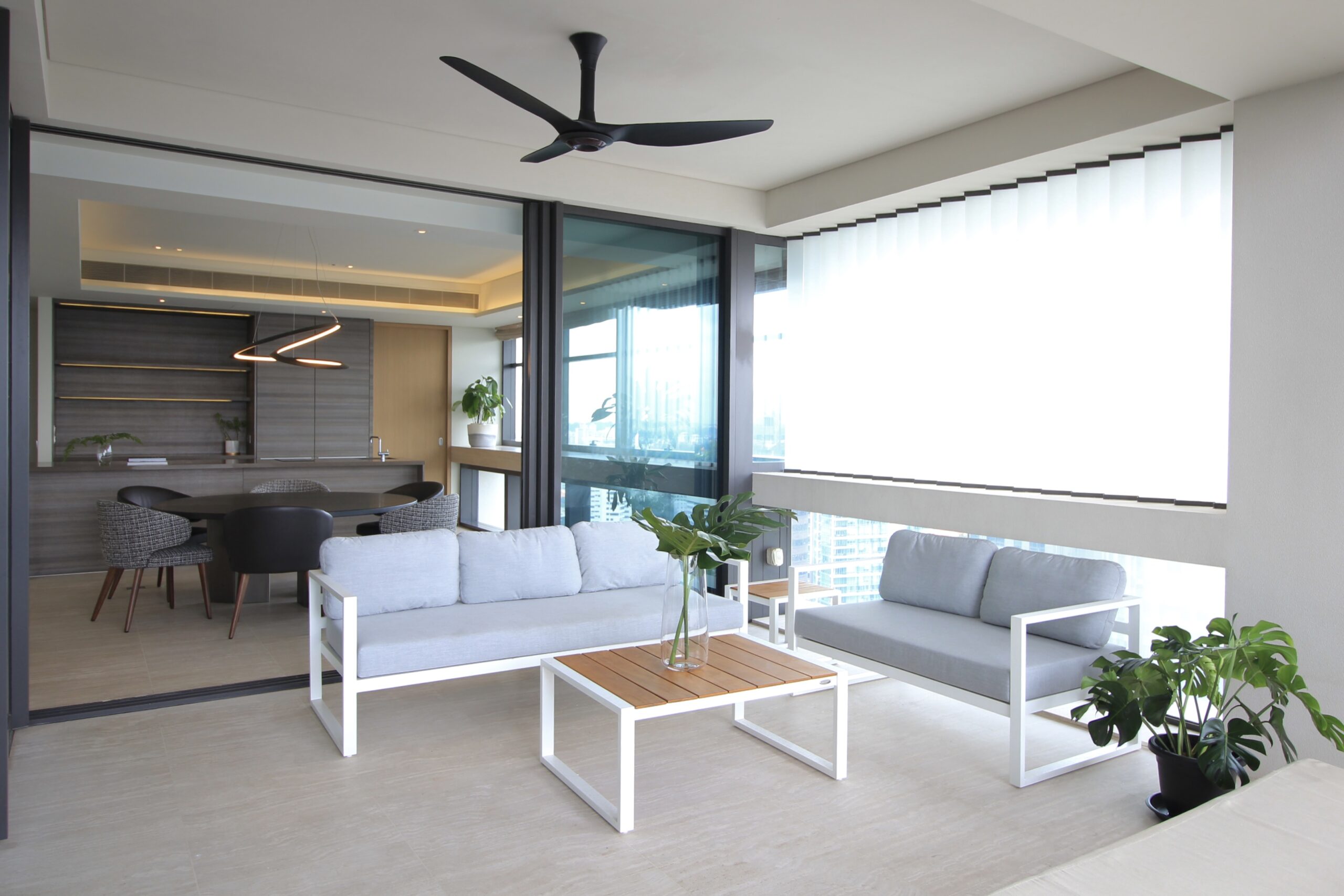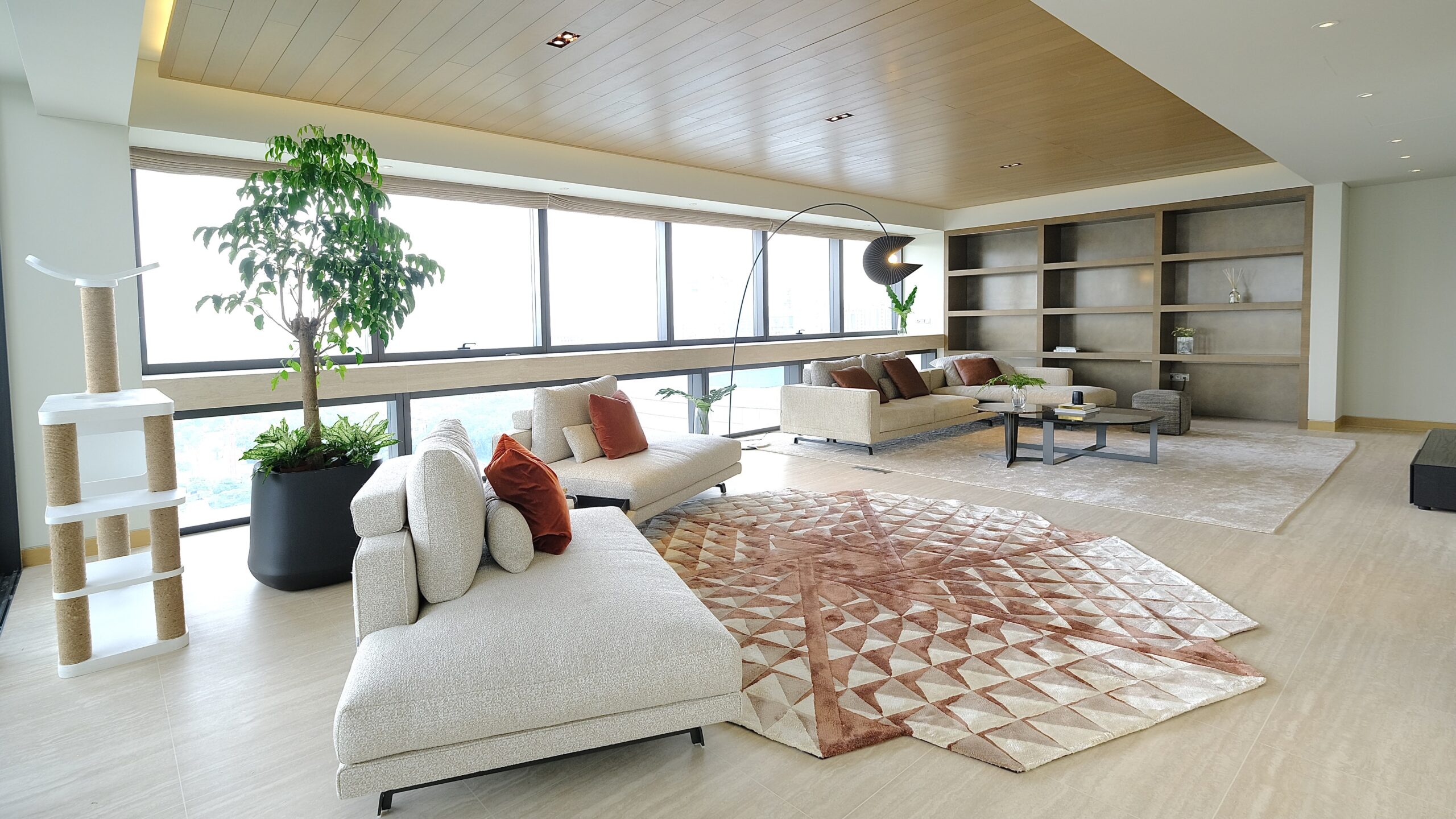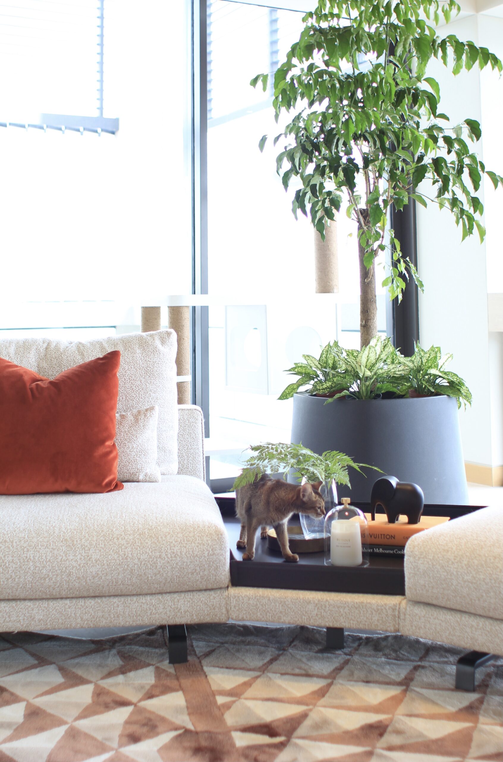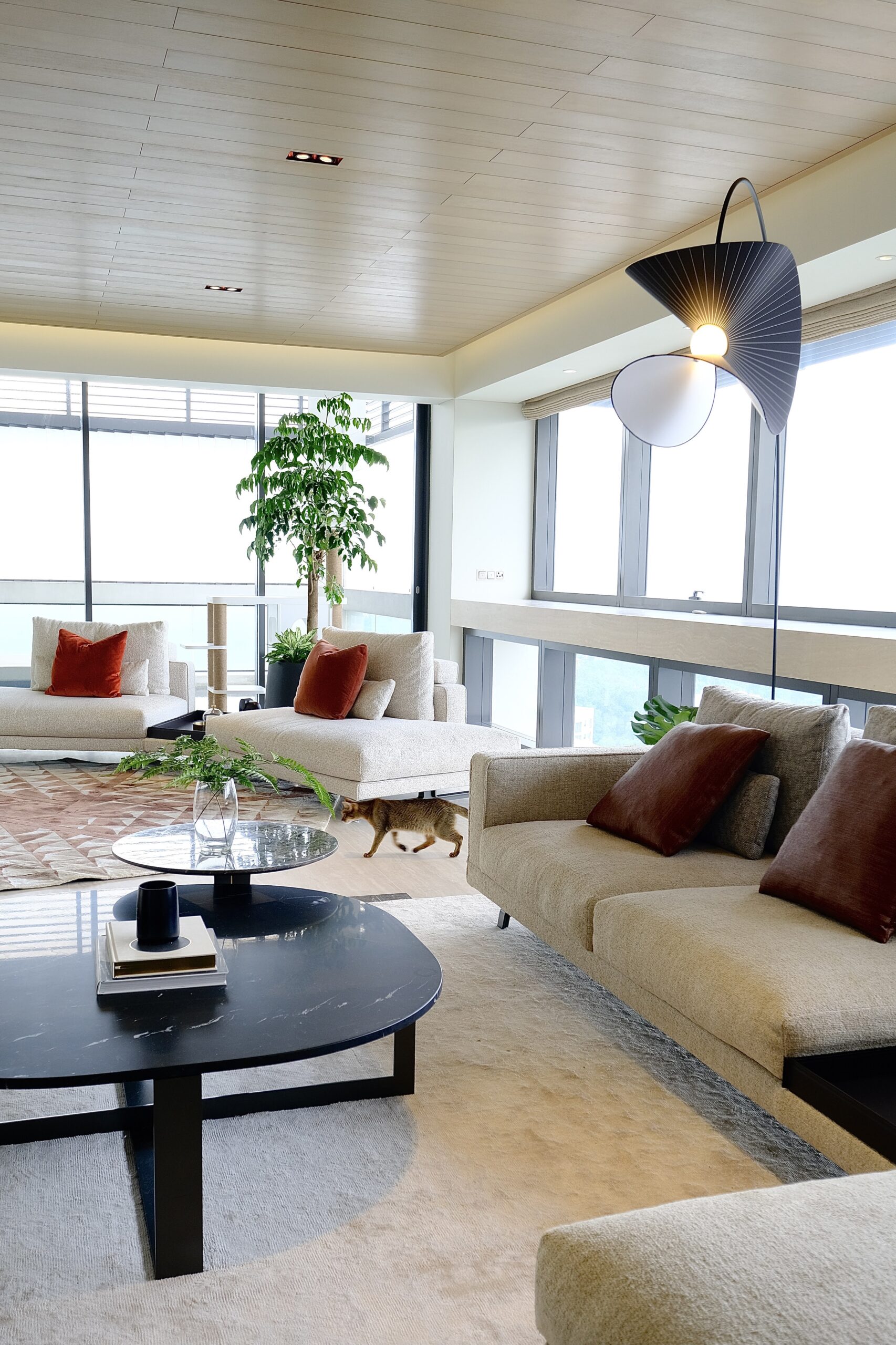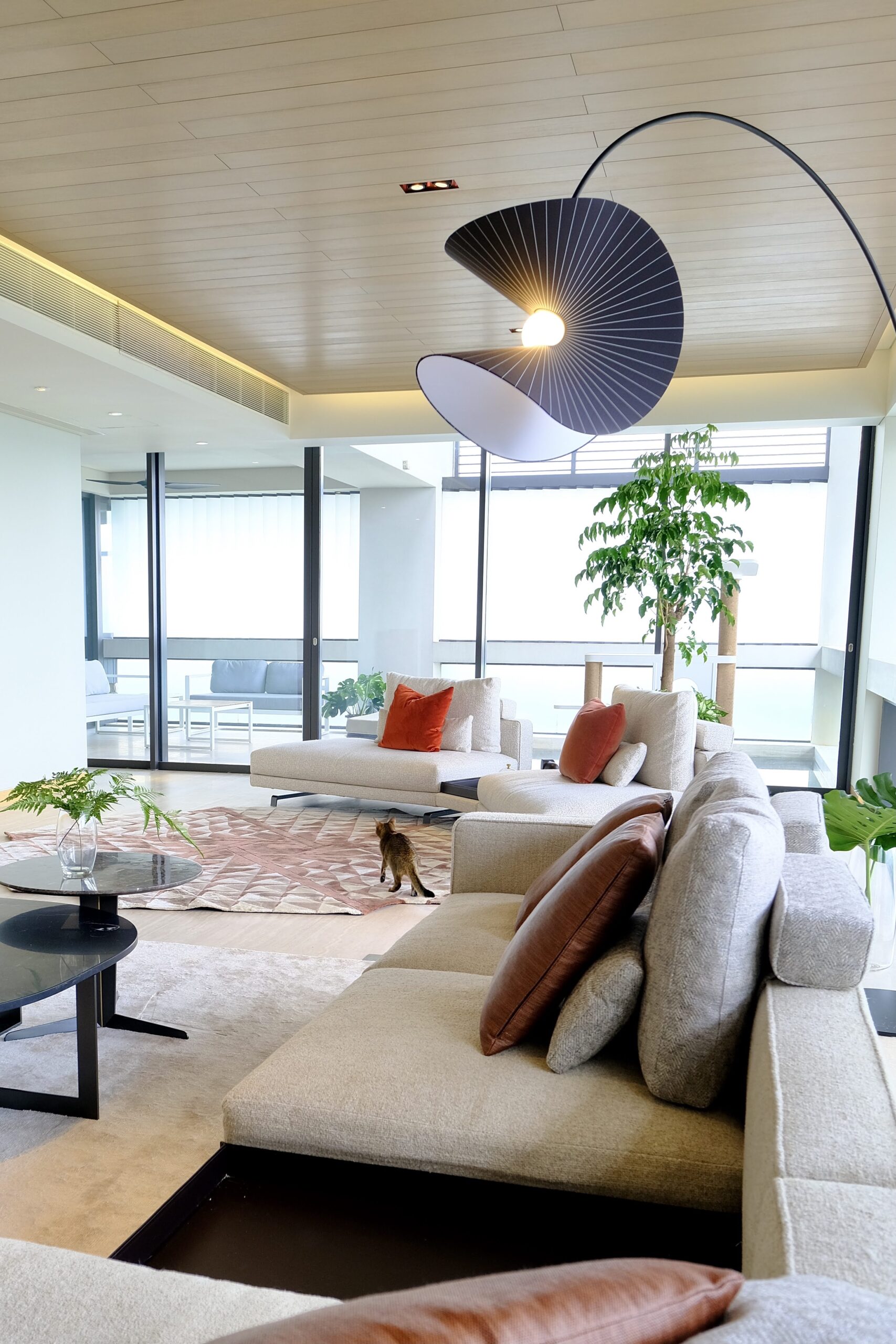 Moving from Japan to Singapore, this client had just over a month before move-in — and a large, empty home to fill. We embraced their request for bold, adventurous design with a curated selection of high-quality furnishings, contemporary rugs, geometric lighting, and a rich color palette.