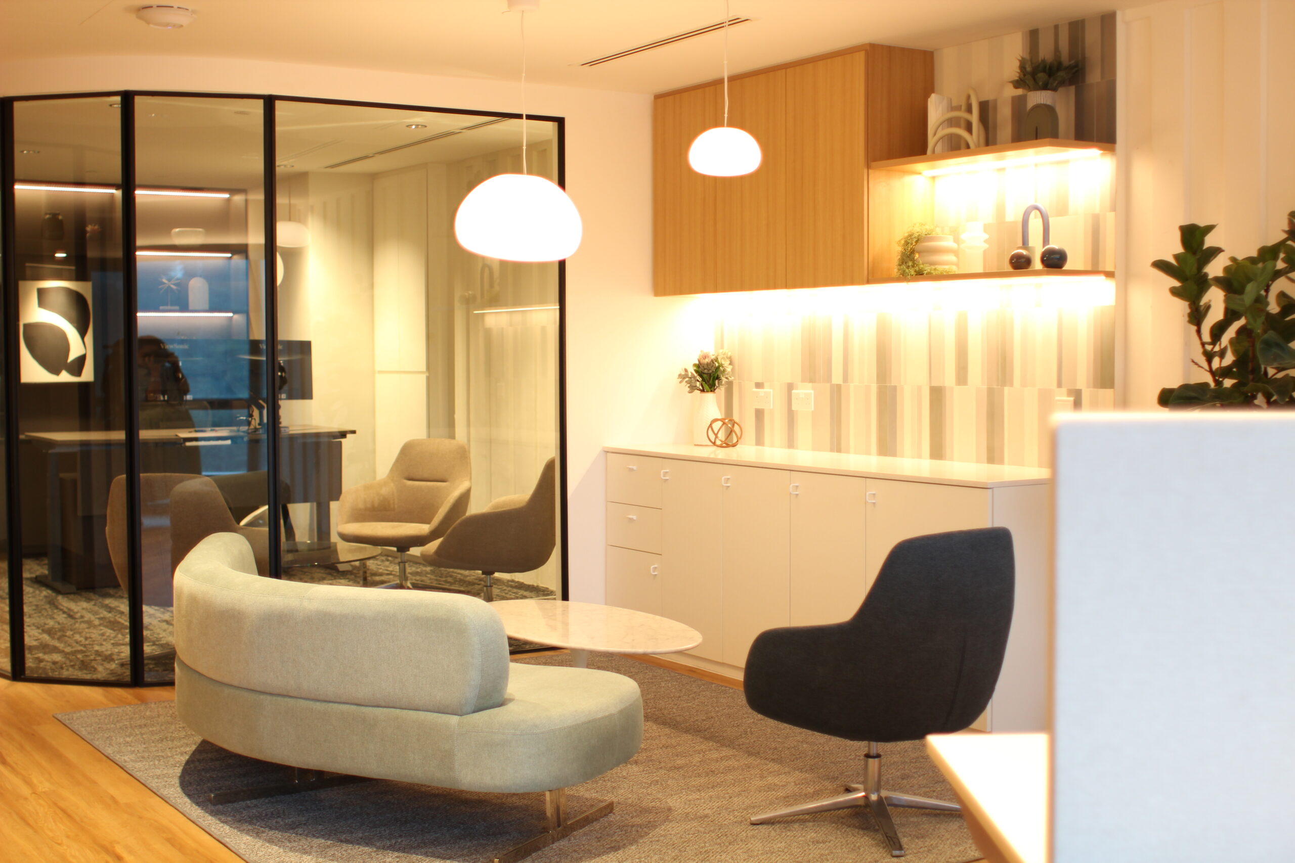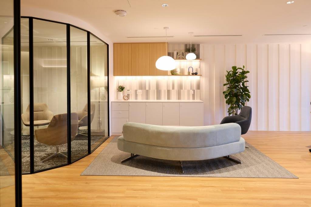 The workspace now reflects the team’s wish for a bright, casual atmosphere, accented with an on-trend palette of blues, greens, and mauves. In contrast, the MD room and meeting room are calm and sophisticated, with rich carpets and refined furniture.