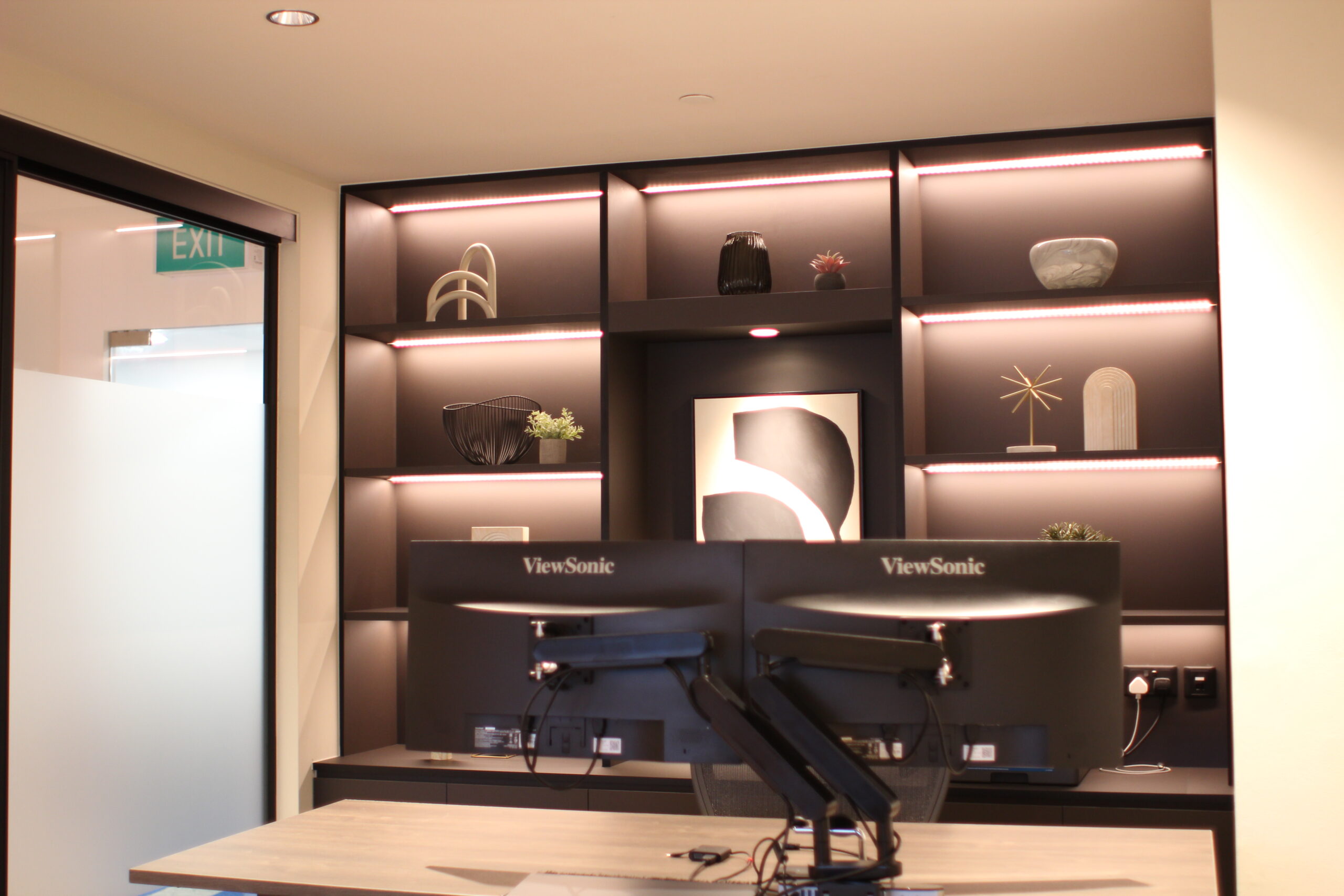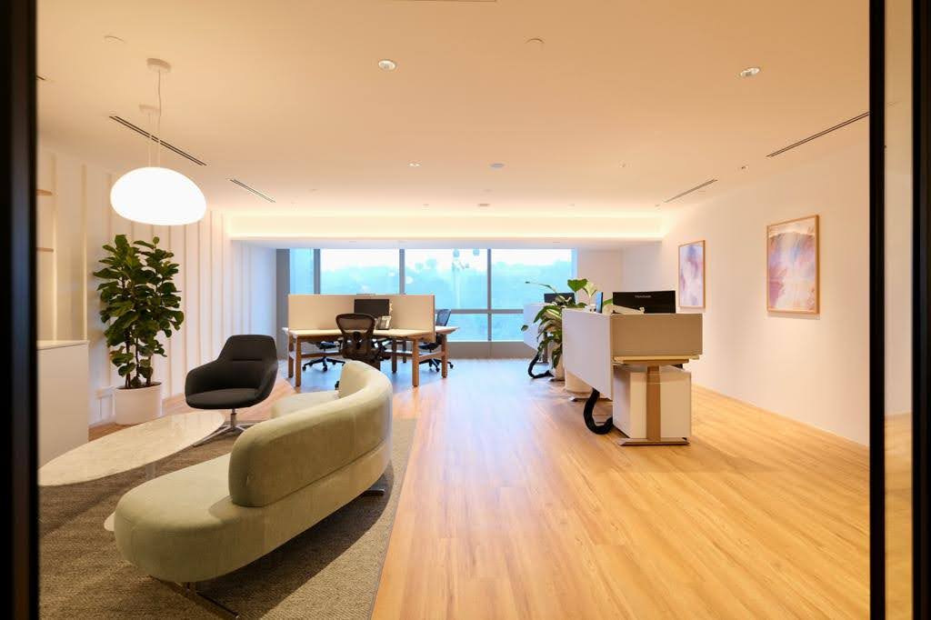 Lighting was the final magic touch. Instead of harsh white lights common in Singapore offices, we used warm downlights that are both easy on the eyes and perfectly bright for work—instantly upgrading the whole atmosphere.