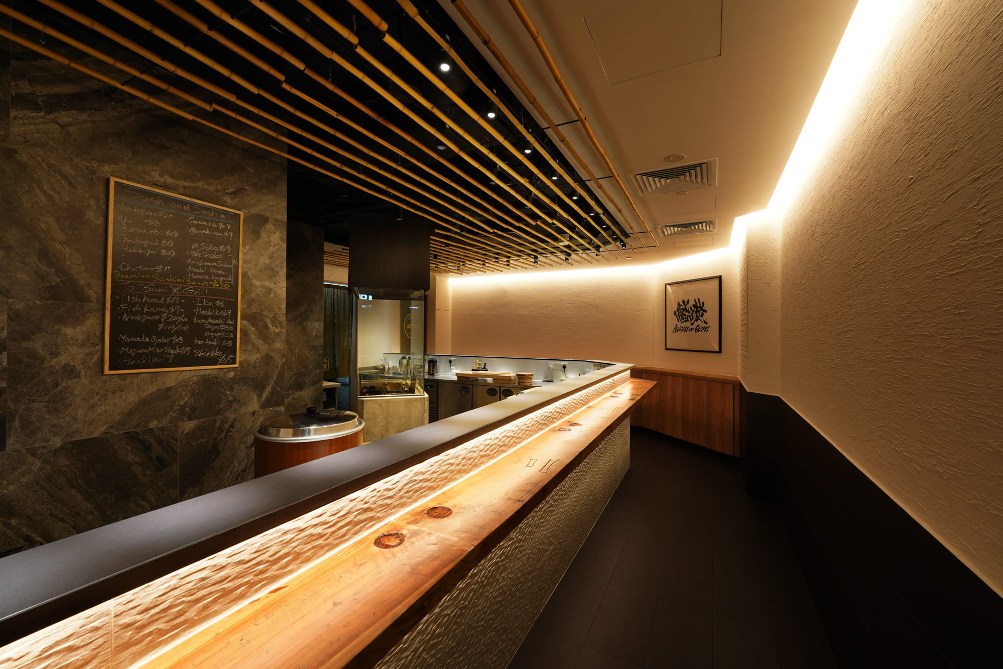 Mr. Shintani from Araya Shoten, a shop known for high-quality Japanese fish in Singapore, requested: create a space that offers high-quality sushi and charcoal-grilled dishes, with casual standing-style dining and affordable prices, but uncompromising on quality.
