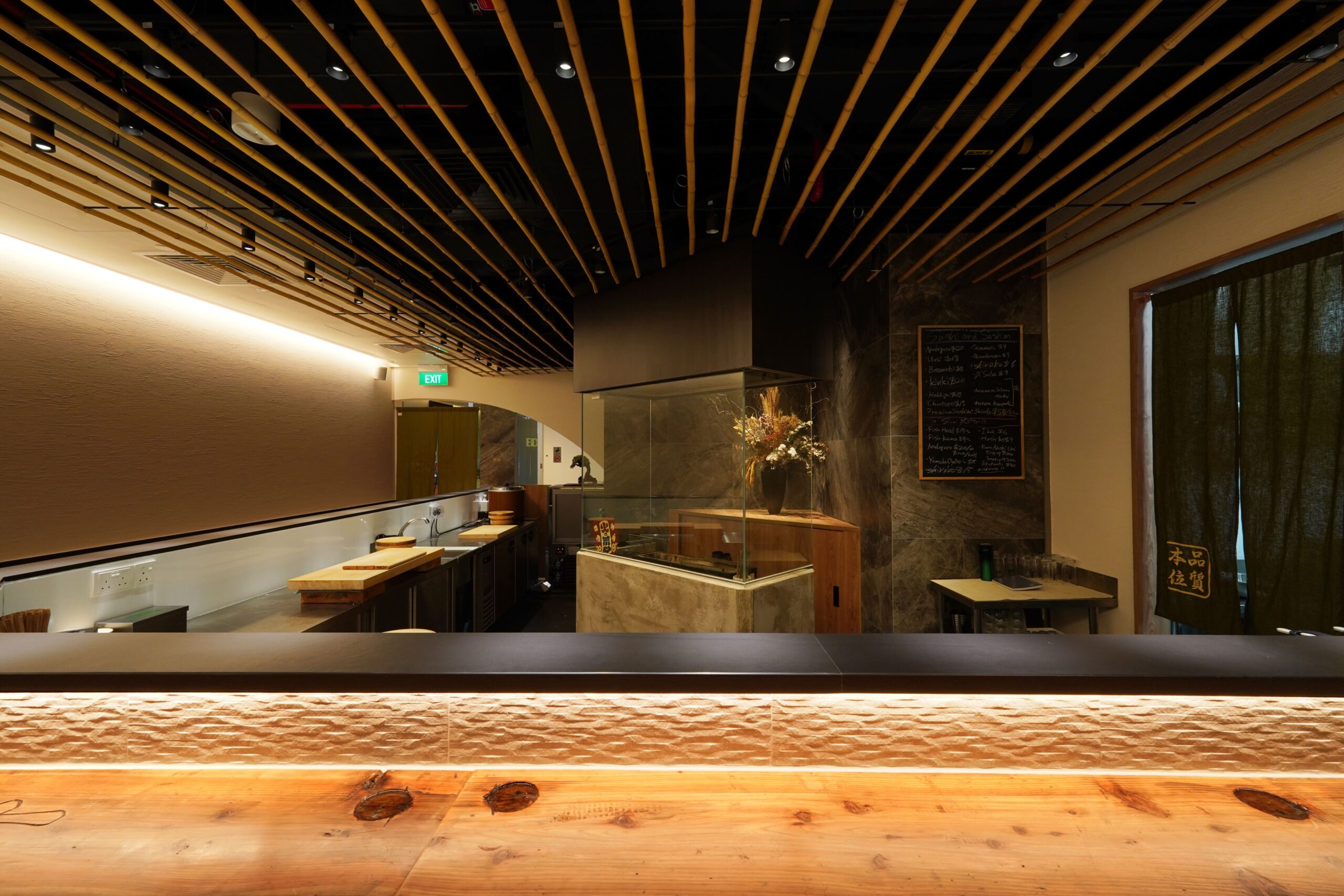 We handled the interior design and construction management for Sushi & Charcoal, which opened in December 2023 in Raffles Place.