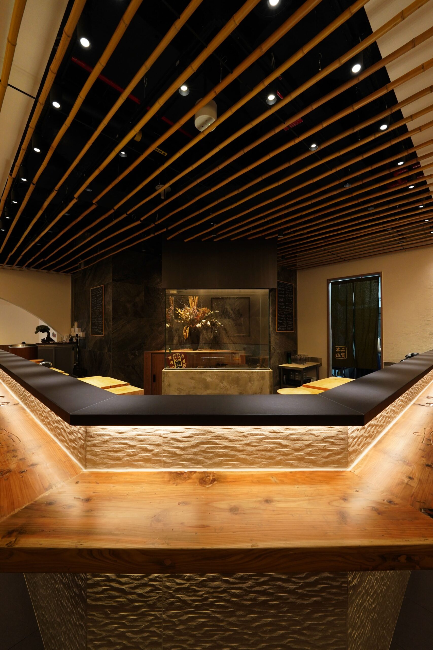 Every material, color, and design element was chosen to reflect refined Japanese tradition with a contemporary twist. Lighting, designed in collaboration with Singapore-based studio "ambiguous", transforms the sushi counter into a stage, bringing the textures of walls, tiles, and cuisine vividly to life.